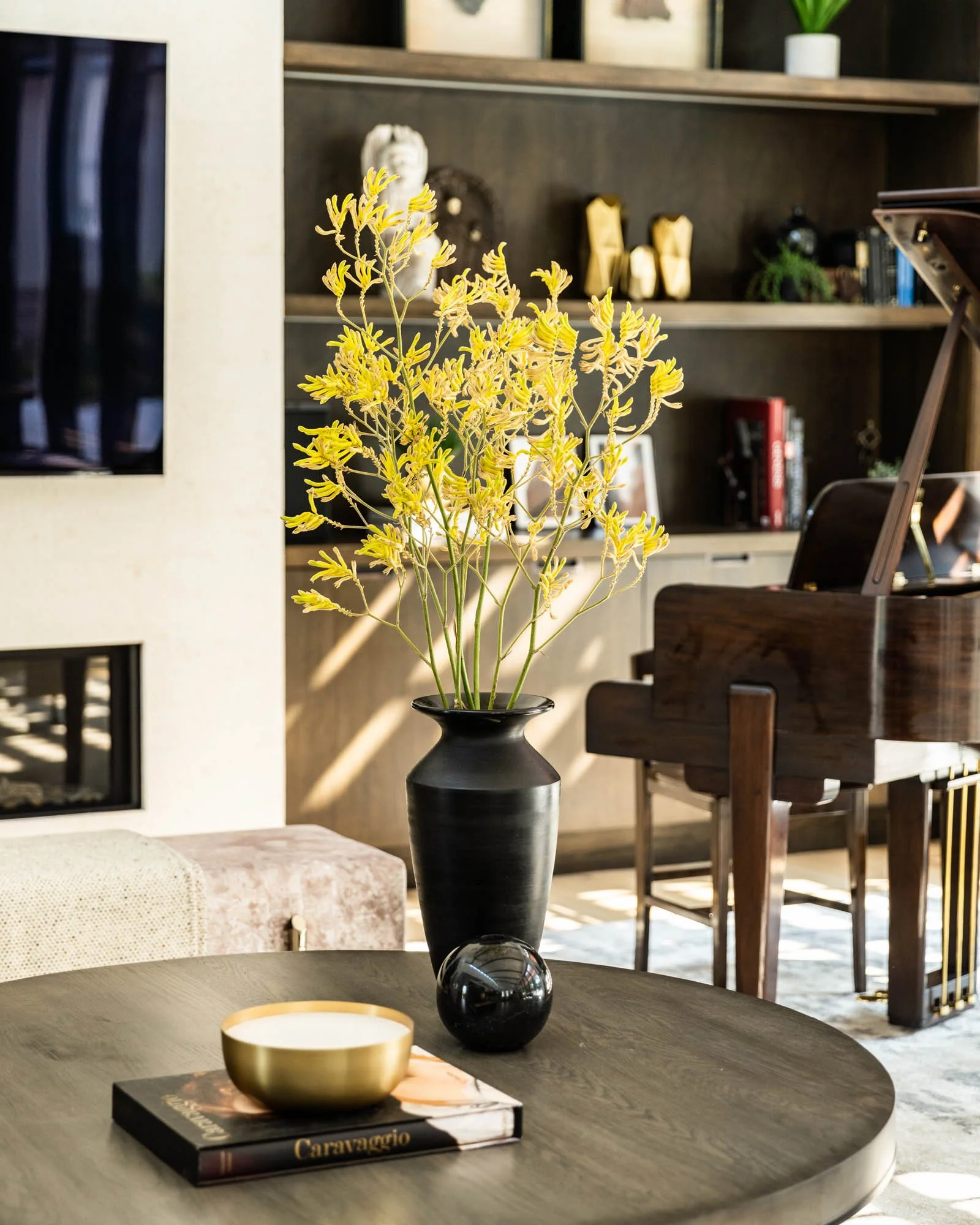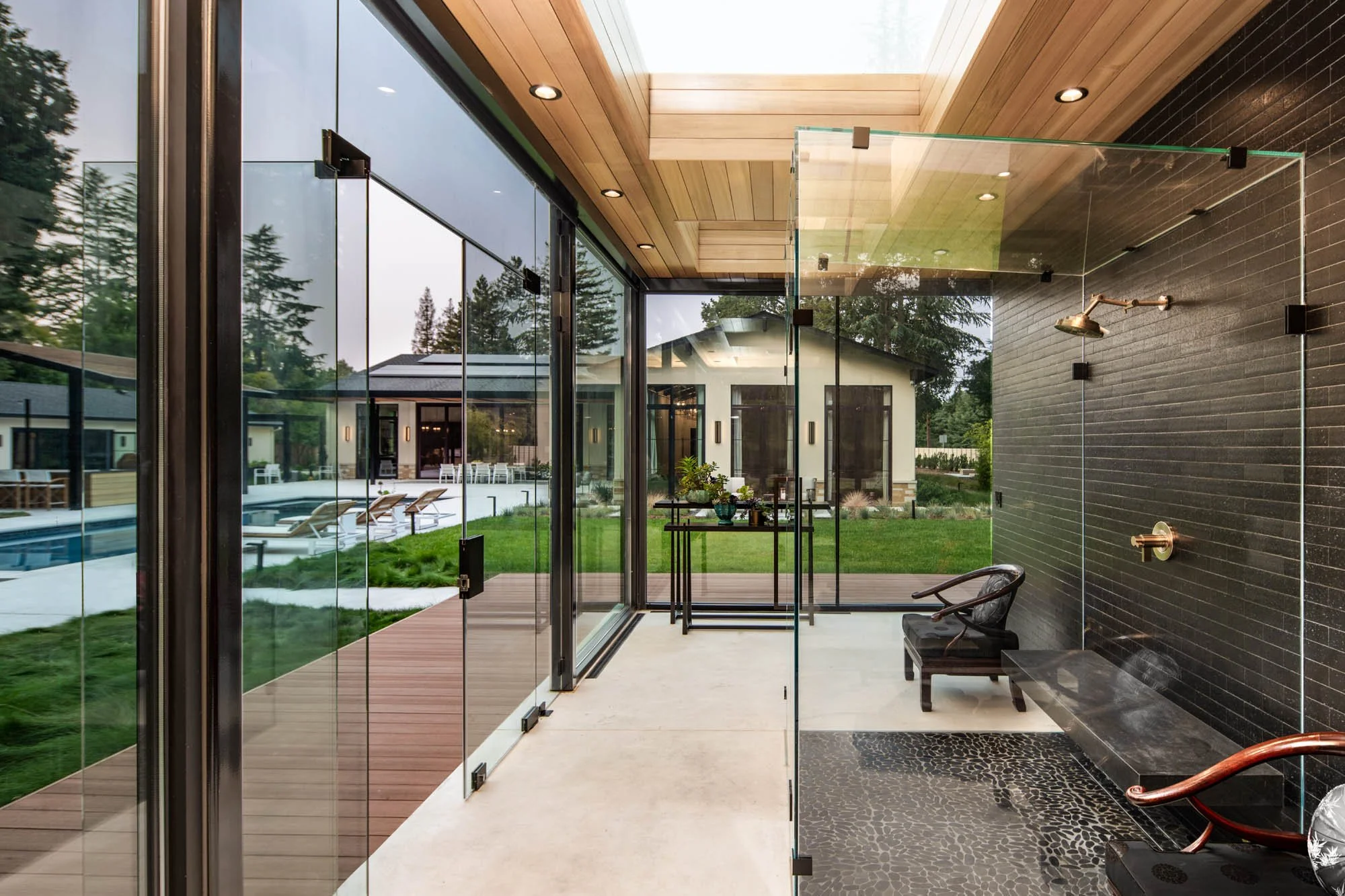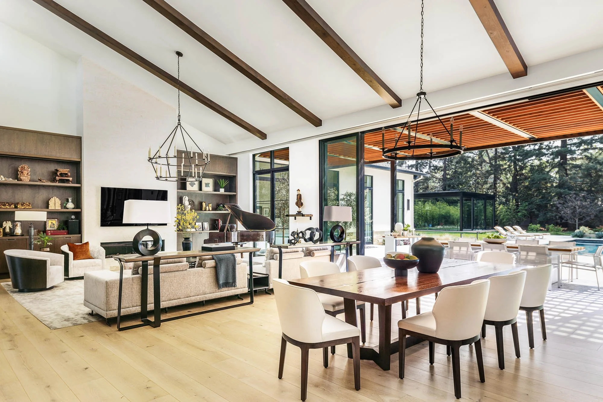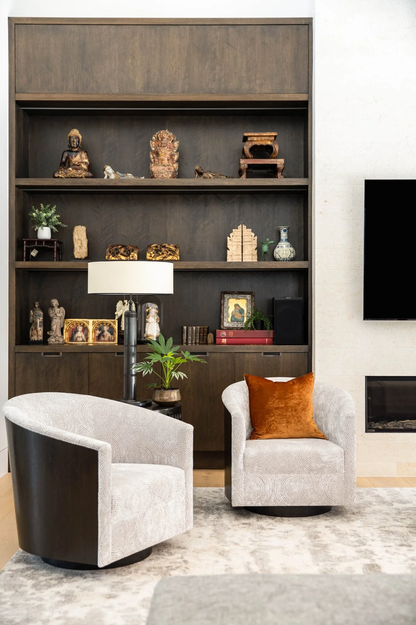 This home was a labor of love that spanned over 3 years of renovation. What started as a small remodel quickly turned into an entire estate, complete with a 1 Bedroom ADU, outdoor Kitchen, pool area and steel & glass enclosure coined the “Wellness Center” that features a gym on one side, and a steam shower/plant haven on the other. Antique Spanish doors provided by the client were incorporated into the design as their exterior gate & Office entrance. Custom furniture is sprinkled across the estate, along with high end finishes, and worldly décor as a homage to the client’s heritage.