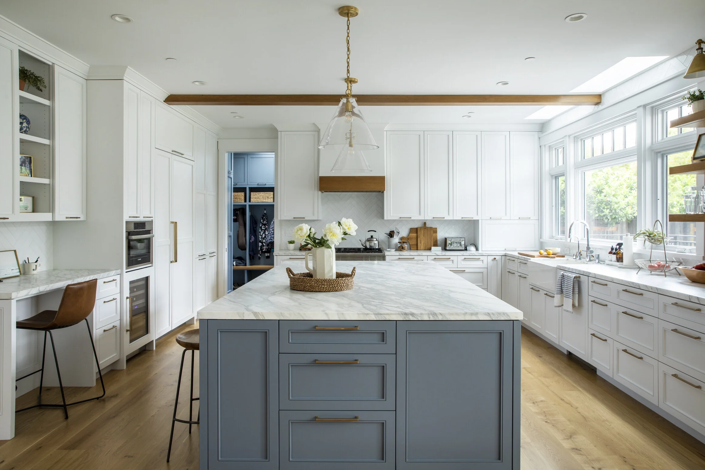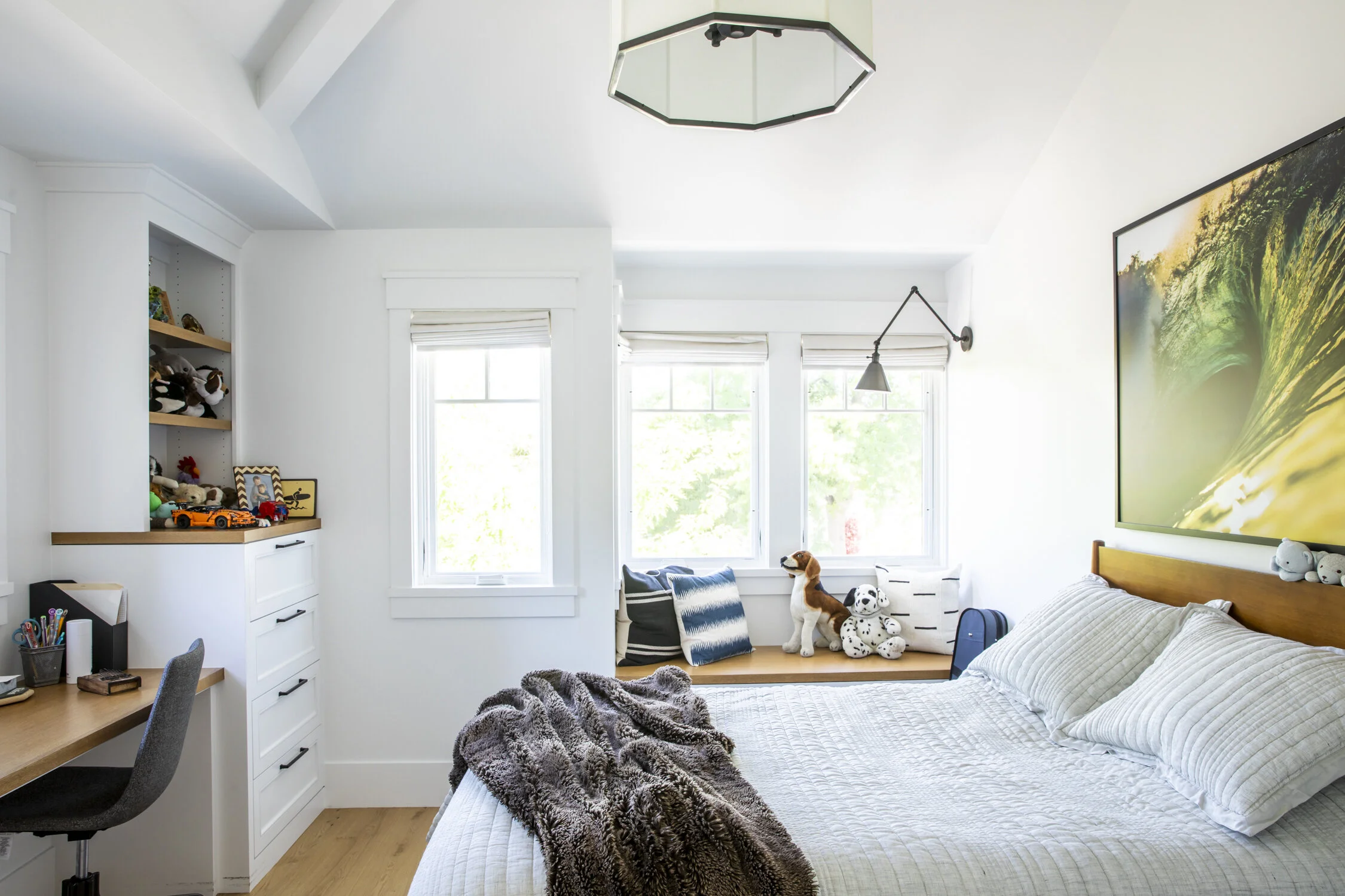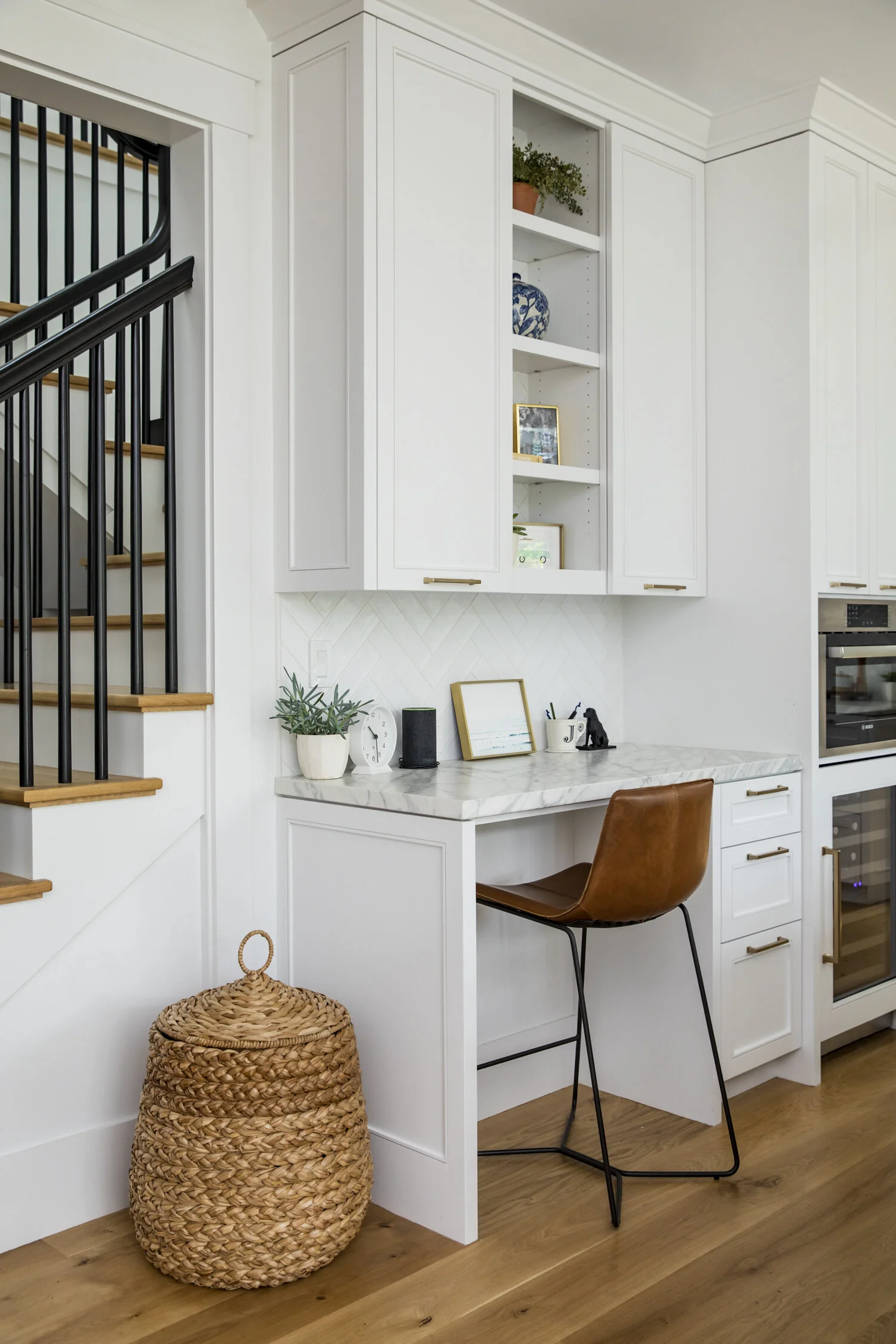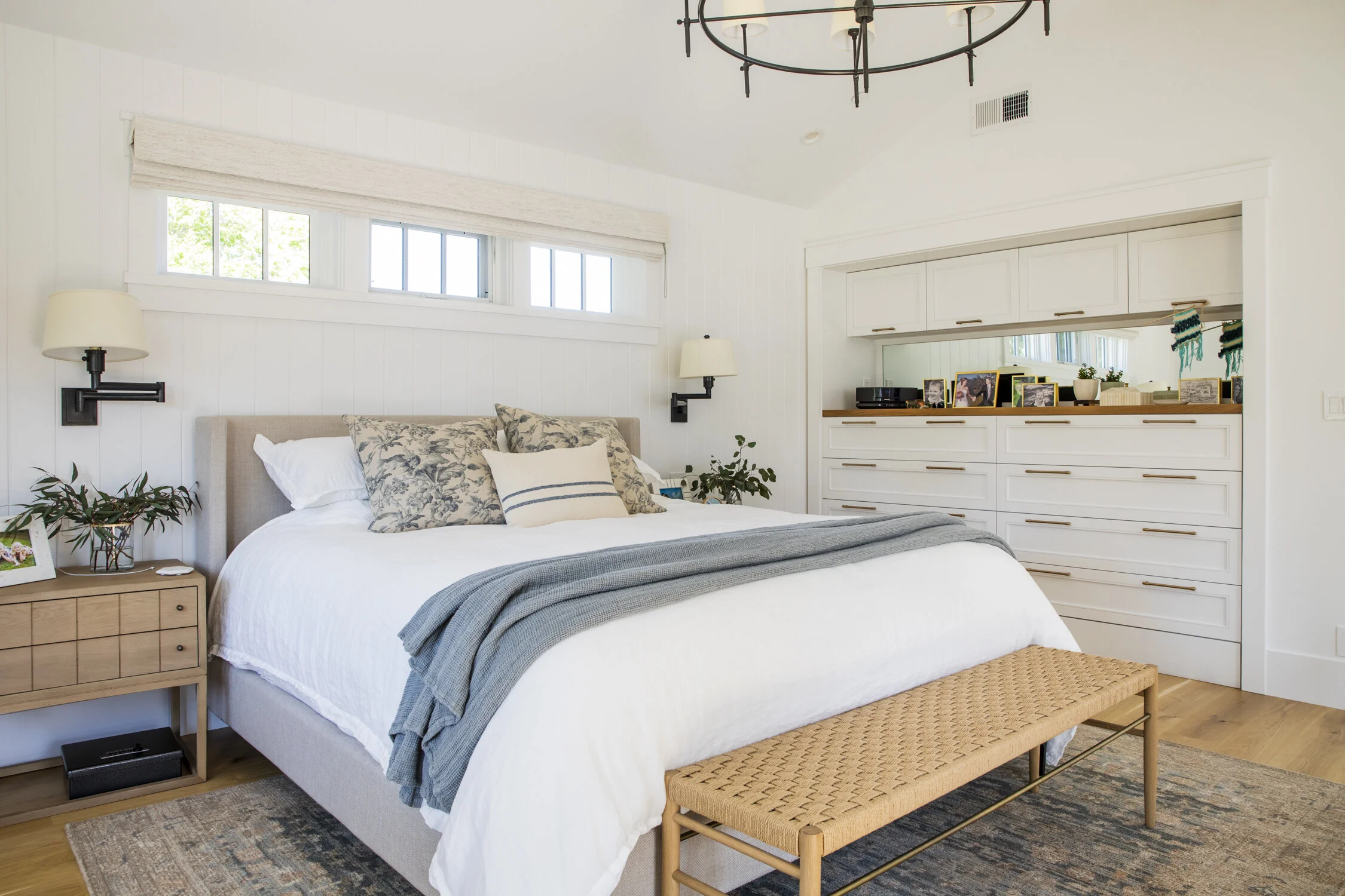 This new construction based in Palo Alto, CA incorporated the client’s farmhouse aesthetic with an updated touch. All new exterior façade with room for a porch swing and perfectly executed space planning allows for a large entertaining space in the adjoining Kitchen and Great Room. Small surprises like a desk space in the Kitchen as well as a built in dresser and mirror in the Primary Bedroom cater to the client’s everyday life.